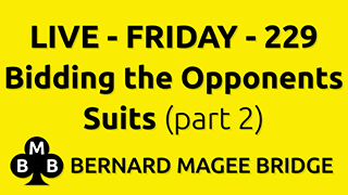 | Friday Live 229 – Bidding the Opponents Suits (part 2) | 15th November 2024 |