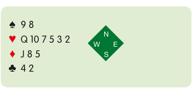 West’s rescue into 1♥ suggests long hearts and short clubs, clearly in a hand too weak to bid the first time. West might hold: